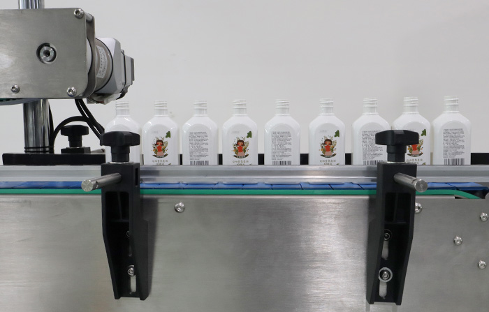 采用了双侧刚性塑胶同步导向链条,自动保证瓶子对中性,对工人放瓶和流水线对接进瓶要求低,大大降低工人作业或流水线对接难度,可单机生产,也可接流水线生产。
