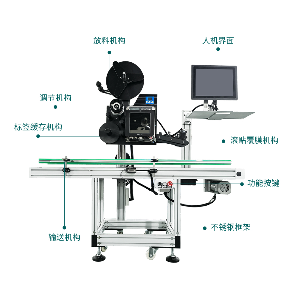 可选配打码机或喷码机到贴标头,可实现在标签上打印生产日期、批号和喷印条码等信息。